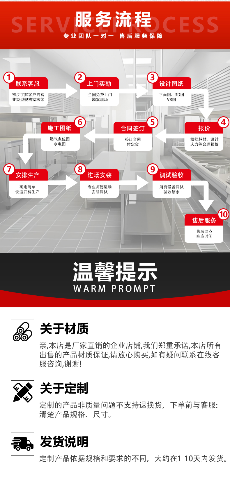 廣(guǎng)東媚娘直播(shǒu)廚房設備有限公司坐落於中(zhōng)國製造業名城——廣東省東莞市,是一家專注於工廠、學校、酒店,餐(cān)飲、機關單位機關、部隊、企事業(yè)單位等大型食堂廚房整套設備設計(jì)、生產、安裝(zhuāng)、調試及售後服務的專業化公司。公司創始(shǐ)人擁有(yǒu)十五年以(yǐ)上(shàng)的行業服務經驗,曾為全國上萬家廚房設備提供服務,並(bìng)對大型學生營養(yǎng)餐中央廚房(fáng)、大型消(xiāo)毒庫、大型冷庫提供全程一站式服(fú)務(wù),積累了豐富的經驗(yàn)和良好的口(kǒu)碑。 如果有(yǒu)需求,可聯係客服(fú)谘詢,免費設計(jì)出圖,電(diàn)話18688815309